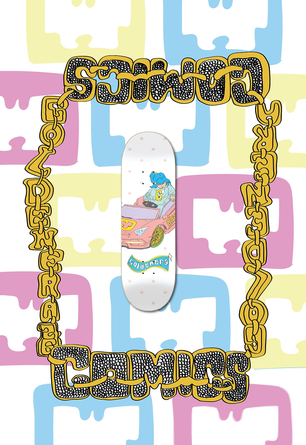 GoldenEraComics© "Pink Convertible" Skate Deck